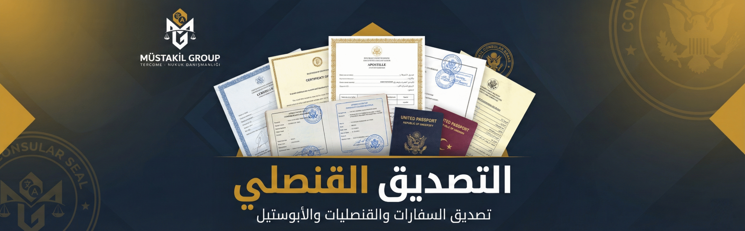 نقدم خدمات التصديق القنصلي والمعاملات الرسمية المرتبطة بتوثيق الوثائق داخل تركيا وخارجها، لضمان قبول مستنداتك في جميع الجهات الرسمية، سواء في السفارات، القنصليات، الدوائر الحكومية أو المؤسسات الدولية.